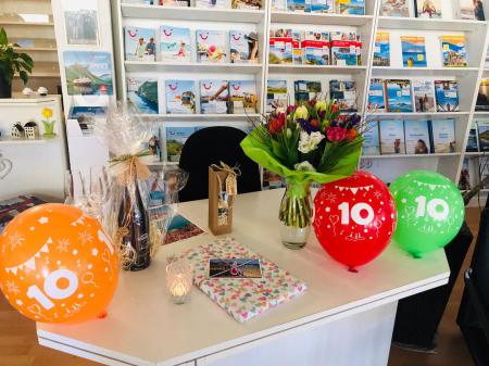 Wir feiern 10 jähriges Jubiläum - Lob von den Mitarbeiterinnen. Vor 10 Jahren hat Martina Ilsanker-Ehlen das Reisebüro Welter von Frau Welter übernommen.