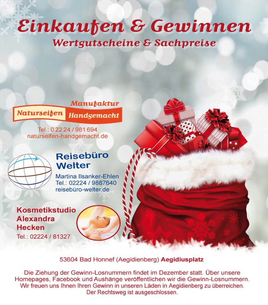 Veröffentlichung der Gewinn-Losnummern von der Weihnachtsverlosung
