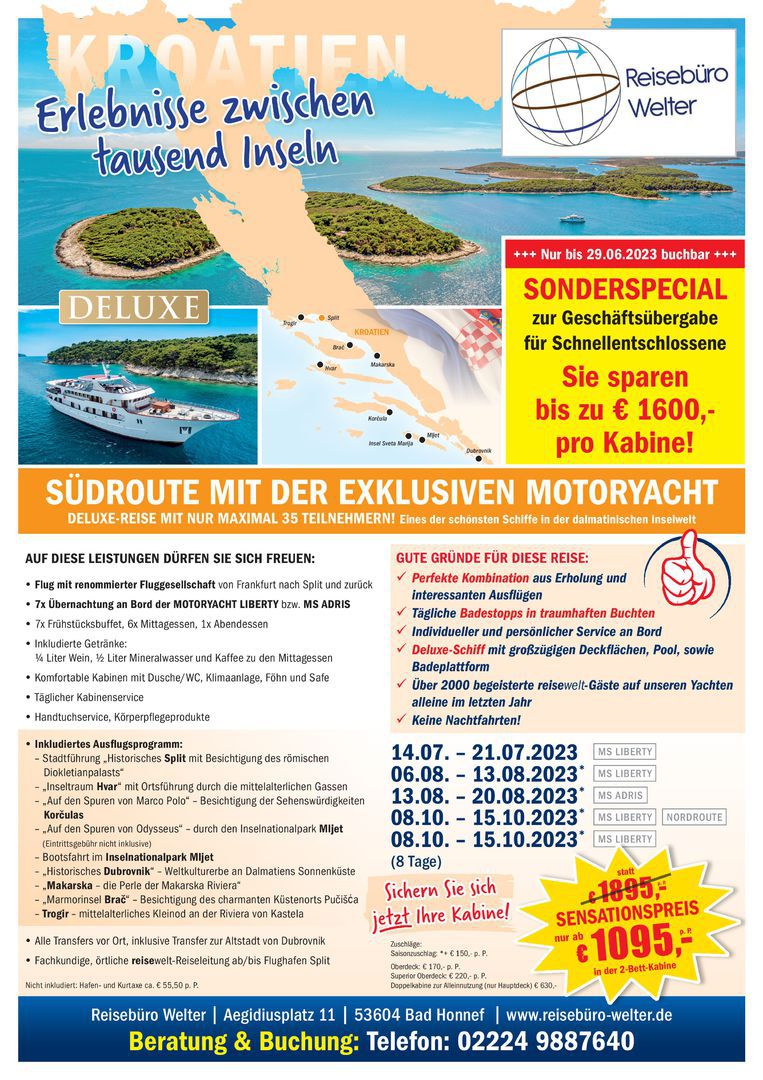 Hier ein exklusives Angebot zur Übergabefeier von unserem vortragenden Veranstalter "Reisewelt teiser - Inselwelt Kroatien".