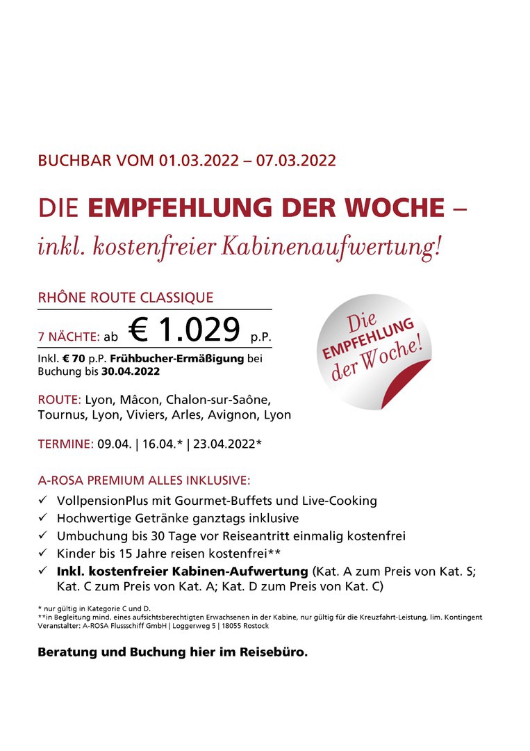 Aktuelle Wochenangebote von verschiedenen Reiseveranstaltern wie TUI, DER usw.