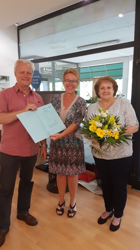 Anlässlich des 10- jährigen Bestehens unseres Experten Netzwerks "mein reisespezialist" haben viele unserer Kunden am Jubiläumsmailing teilgenommen . Über den 1. Preis, eine einwöchige Kreuzfahrt mit der "Mein Schiff" freuen sich Gerlinde und Richard Winter. Inhaberin Martina Ilsanker-Ehlen , mein reisespezialist Reisebüro Welter , gratuliert den Kunden und freut sich mit über diese tolle Reise.