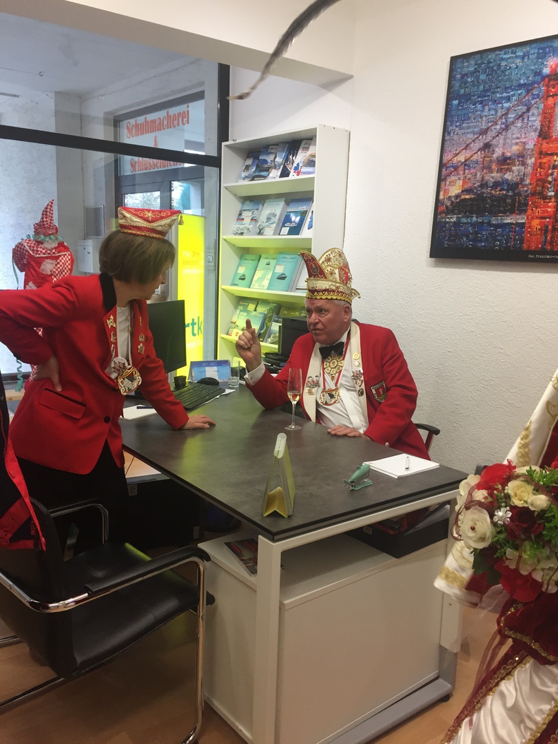 Aegidienberger Prinzenpaar Aegidia Franziska I. und Prinz Peter IV. zu Besuch in unserem Reisebüro